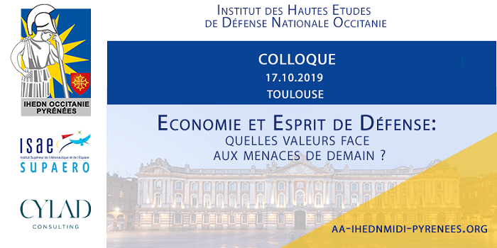 Les Auditeurs de l’Institut des Hautes Etudes de Défense Nationale en Occitanie, en partenariat avec CYLAD Consulting et l’ISAE-SUPAERO, organisent un Colloque sur le thème : « Economie et Esprit de Défense : Quelles valeurs face aux menaces de demain ? »